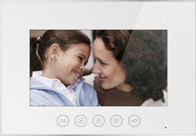 7-дюймовий FullHD 1080P IPS AHD монітор із сенсорними кнопками. Підтримка TVI/CVI/AHD 1080P/720P/CVBS викликних панелей та камер. Запис відео, наявність функції детекції руху, інтерком. Колір: білий.