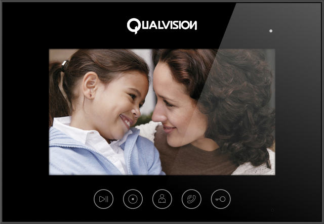Відеодомофон Qualvision QV-IDS4783AW Black 7-дюймовий монітор TFT LCD, 1024 x 600 Підтримка стандартів відеовходу: 1080P/720P (AHD/TVI/CVI/CVBS) До 2-х панелей виклику, до 2-х камер відеоспостереження Підтримка до 5 додаткових моніторів (функція Інте...