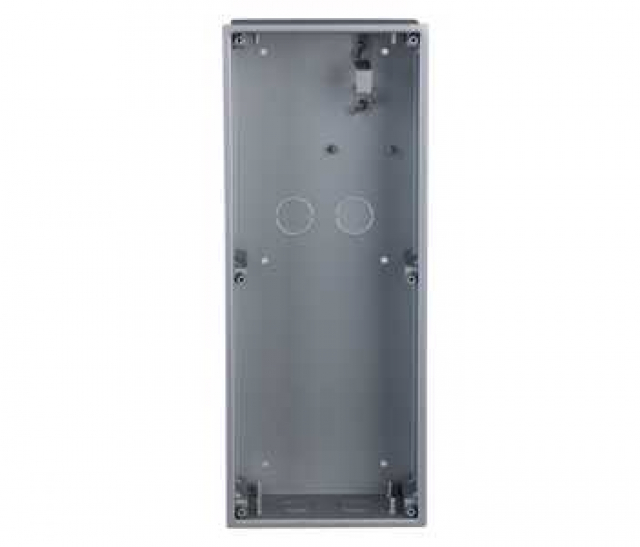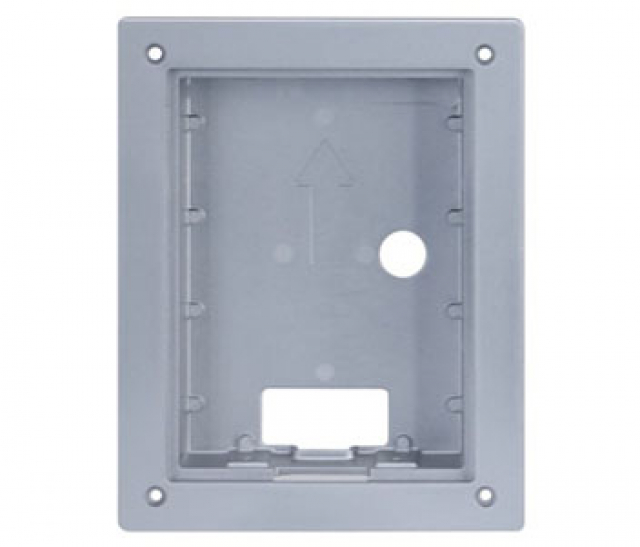 Коробка для врезного монтажа. Материал: ADC12; Размер: спереди: 128,9 х 162,9 х 4,5 мм, сзади: 123 х 157 х 35 мм, отверствия в стене: >113 x 149 x 35 мм, < 123 x 157 x 35 мм