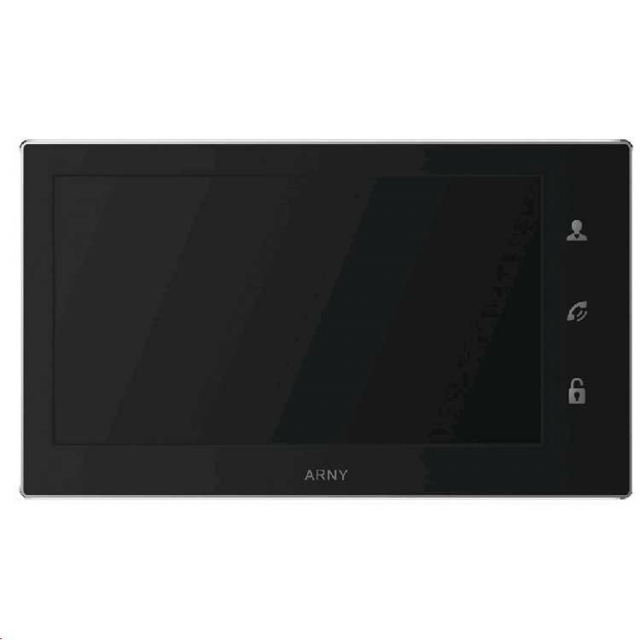 Производитель Arny Тип устройства Монитор Способ связи Громкая связь Размер дисплея 7" 7-дюймовый TFT LCD сенсорный экран. Подключение 2-х панелей вызова и 2-х видеокамер. Встроенная память на 1000 фото, поддержка SD карты до 32 Гб, 2 тревожных выхода, поддержка до 4-х мониторов в системе, встроенный блок питания. Габаритные размеры: 1...