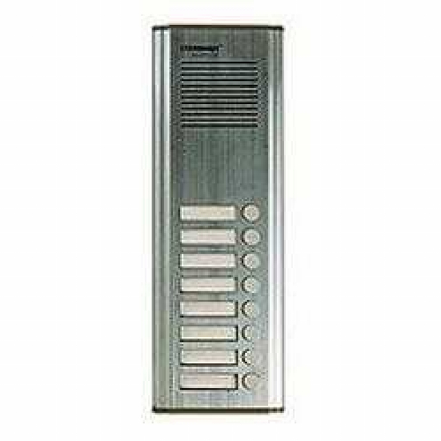 •аудиопанель для 8 абонентов, •антивандальный металлический корпус (алюминий), •двусторонняя аудио связь, •встраиваемая установка, •рабочая температура от -10° до +50°С, •размеры117(Ш) х 368(В) х 18(Г) мм