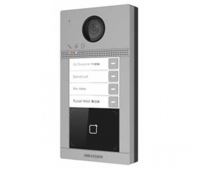 2 Мп IP вызывная панель на 4 абонента. 1080р - 25к/с; Интерфейсы: RS-485; Wi-fi 2.4 ГГц. Тревога: 4/1; ИК-подсветка; Двусторонняя аудиосвязь. Степень защиты: IP65, IK08; Питание: DC 12В/PoE IEEE802.3af. Врезной монтаж, 174x91x29 мм