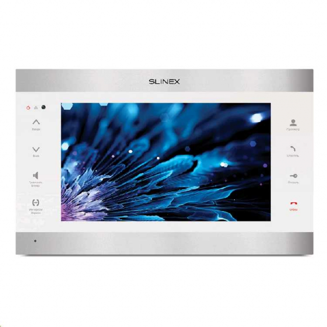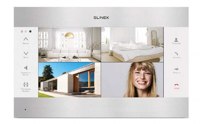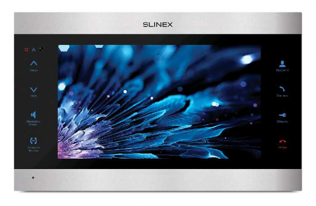 10-дюймовый монитор с сенсорными кнопками. Подключение 2-х панелей, 2-х камер, 3-х дополнительных мониторов и один видеовыход. Програмная детекция движения, запись видео. Габаритные размеры: 305х190х23