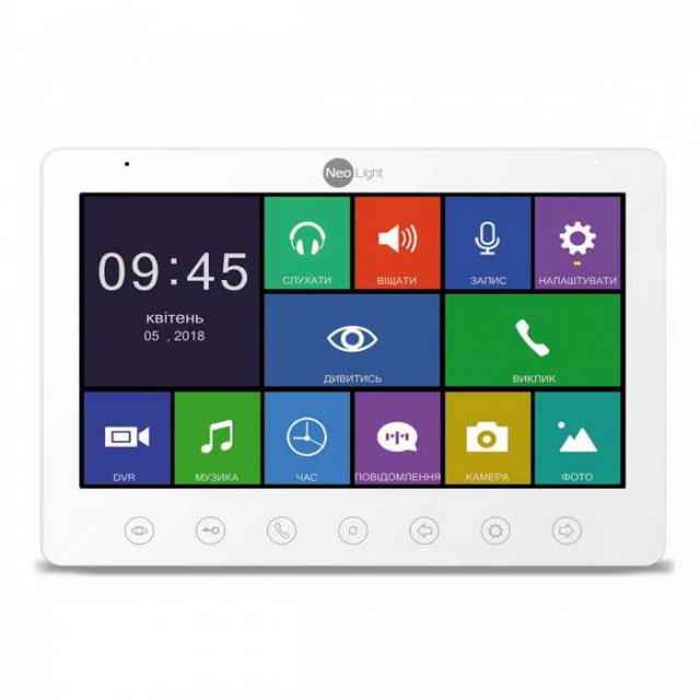 10" Wi-Fi сенсорний IP монітор. Підтримка підключення додаткових викликових панелей та моніторів. Підтримка підключення 8 датчиків тривоги або побутових сенсорів (433MHZ). Дзвінки між абонентами мережі. Підтримка SD карт пам'яті, запис віде...