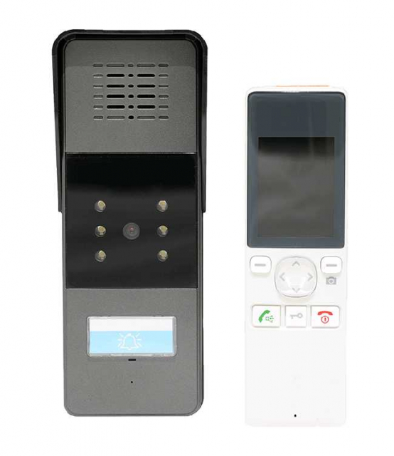 Беспроводной комплект видеодомофона (компактная видеотрубка и панель вызова). Экран 2.4' цветной TFT LCD. Подключение до 4-х панелей вызова. Втроенная память на 50 кадров. Дальность действия до 200м