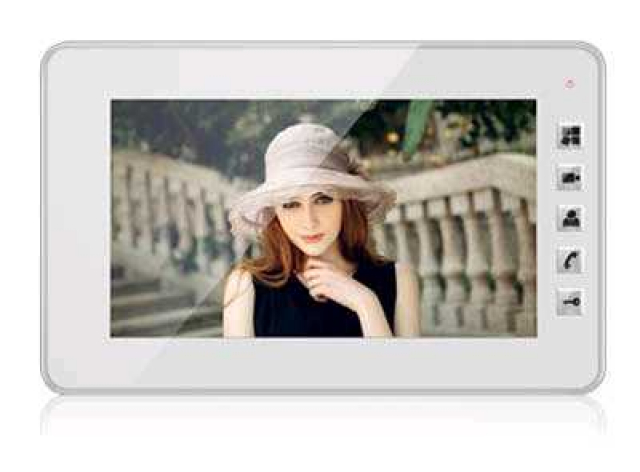 7-дюймовый монитор высокого разрешения, с сенсорными кнопками и встроенной памятью. Подключение 2-х панелей вызова, 3-х доп. мониторов, 1 аудио трубки и карты памяти. Записи видео и аудио потока. Цвет корпуса: белый. Габаритные размеры: 205х128х27.5