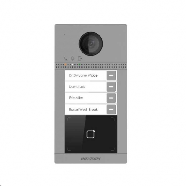 2 Мп IP вызывная панель на 4 абонента. 1080р - 25к/с; Интерфейсы: RS-485; Wi-fi 2.4 ГГц. Тревога: 4/1; ИК-подсветка; Двусторонняя аудиосвязь. Степень защиты: IP65, IK08; Питание: DC 12В/PoE IEEE802.3af. 174x91x29 мм.