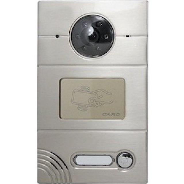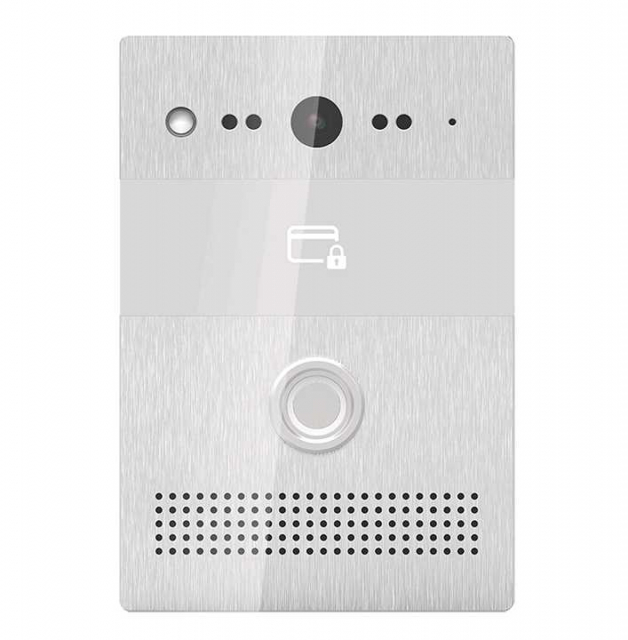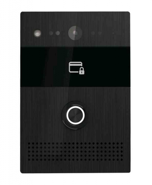 2Мп индивидуальная вызывная панель со встроенным комбинированным считывателем бесконтактных карт EM-Marine и Mifare. Сенсорная кнопка вызова. DC +12, PoE. IP65. Размеры: 168х115х40