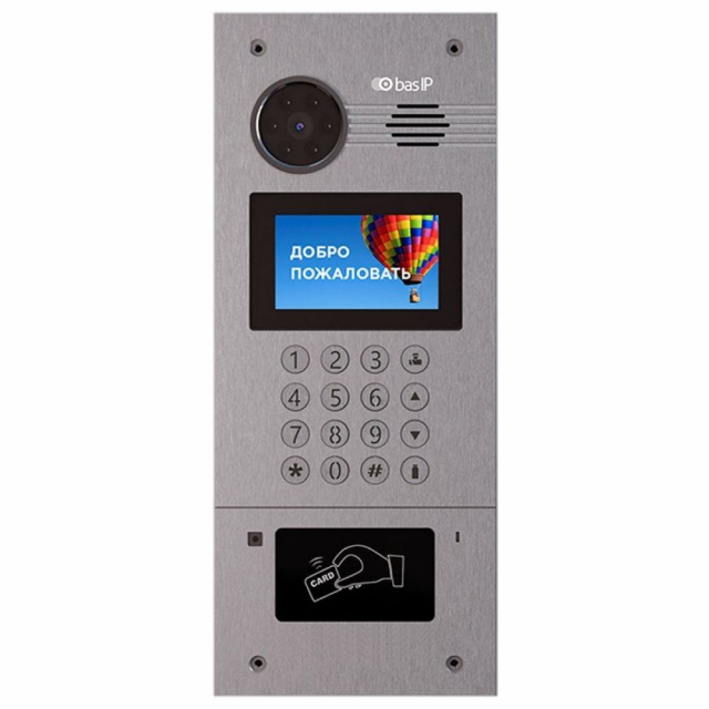 BAS-IP AA-07B/H v4 - многоабонентская вызывная видеопанель. Экран 4,3“ TFT, цветной c подсветкой, Камера поворотная 1.3 Мп. Считыватель для проксимити карт; 2,5" LCD информационный экран; Механические кнопки; Корпус из алюминия; Морозостой...