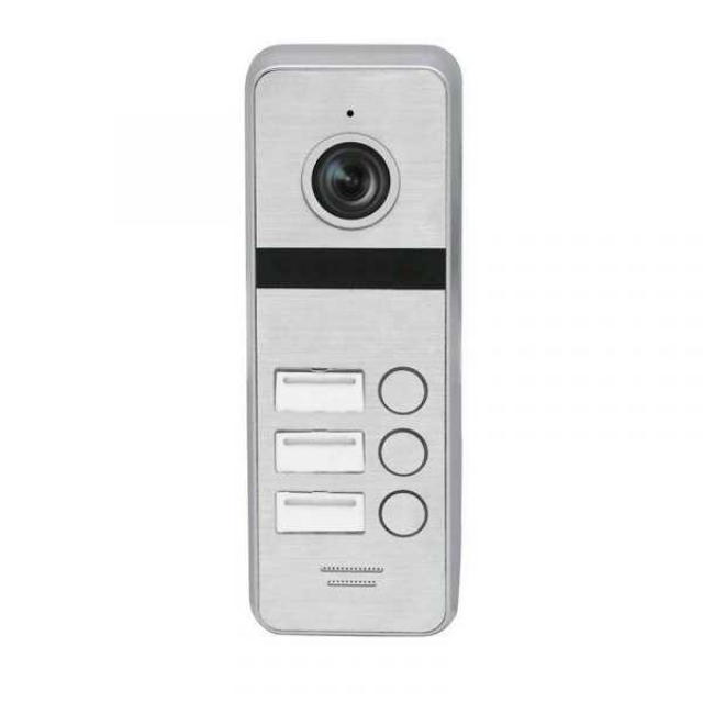 3-х абонентська антивандальна влагозахищена AHD панель виклику з ІЧ підсвічуванням. Вбудована відеокамера з роздільною здатністю 2Мп. Кут огляду: 120 град. Управління замком. Комплектация: уголок