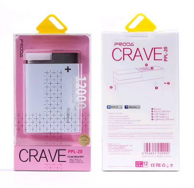 Remax PPL-20 PRODA Power Bank 12000 mAh (цифровая индикация емкости заряда, светодиодный фонарик)