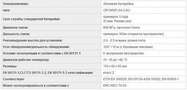 OASIS JA-80P (Беспроводный извещатель движения (в комплекте литиевые батарейки, срок службы 3 года).)