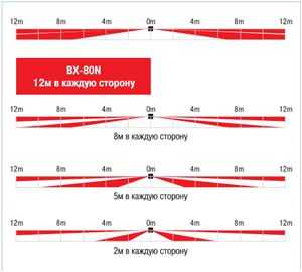 | Область детекции | 12 м в каждую сторону (2 зоны детекции в каждую сторону) |