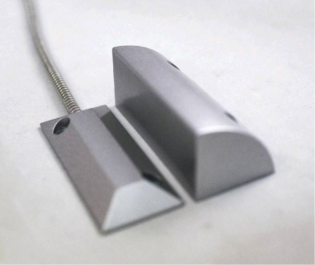 Сповіщувач накладний магнітоконтактний, матеріал корпусу дюраль-алюміній. Призначений для встановлення ролетних воріт, дверей, вікон