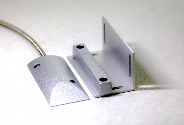 Извещатель магнитоконтактный накладной, материал корпуса дюраль-алюминий. Предназначен для установки роллетные ворота, двери, окна. Рабочее расстояние 50 ~ 70 мм