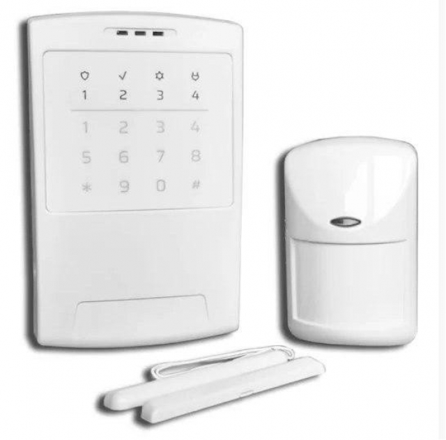 Встроенный LiIon аккумулятор на 25 часов работы, 2 SIM карты, 1 группа и встроенная клавиатура, 4 проводных зоны и 3 выхода на плате, USB для настройки.