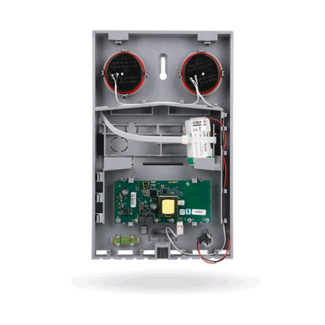 Сирена JA-163A RB состоит из базы JA-163A с печатной платой и литиевой батарейки ВАТ-100А и всегда должна комплектоваться крышкой серии JA-1X1A-C-xx. Сирена поставляется без батареи (приобретается отдельно). Сирена занимает одну позицию в системе. Это изделие должно устанавливаться только обученным специалистом с действительным сертификатом, выданным уполномоченным дистрибьютором.