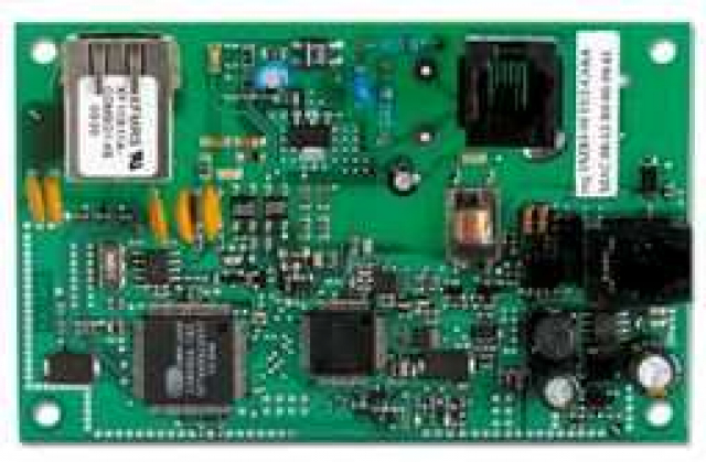 Может устанавливаться внутри корпуса панели управления, соединяется с шиной панели управления, телефонной линией и линией LAN (Ethernet)