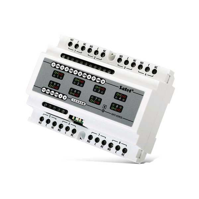 Модуль INT-IORS позволяет расширить систему INTEGRA на 8 программируемых релейных выходов и 8 зон с поддержкой шлейфов NO, NC, EOL и 2EOL. Этот модуль предназначен для осуществления непосредственного управления устройствами 220 В с помощью приемно-контрольного прибора INTEGRA. Он является идеальным решением в случае использования возможностей, предлагаемых приборами INTEGRA для создания системы автоматики. Модуль INT-IORS предназначен для монтажа на стандартную DIN-рейку 35 мм.
