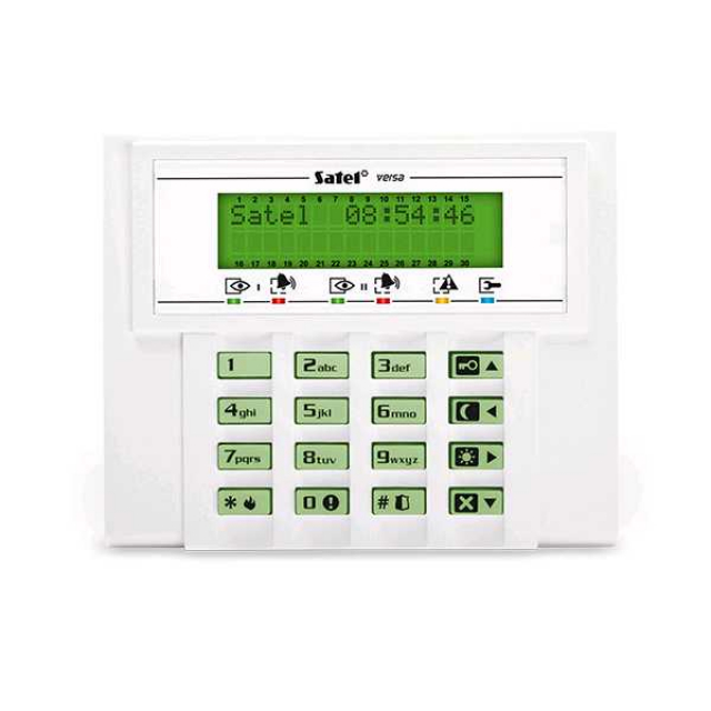 Клавіатура призначена для повсякденного керування системами охоронних сигналізацій VERSA. Завдяки РК-дисплею, на якому відображаються текстові повідомлення, використання навіть розширених функцій приймально-контрольного приладу є зручним та легким. Додаткова перевага – це клавіші швидкого виклику різних типів режиму охорони: повна охорона, охорона ніч або день охорона.