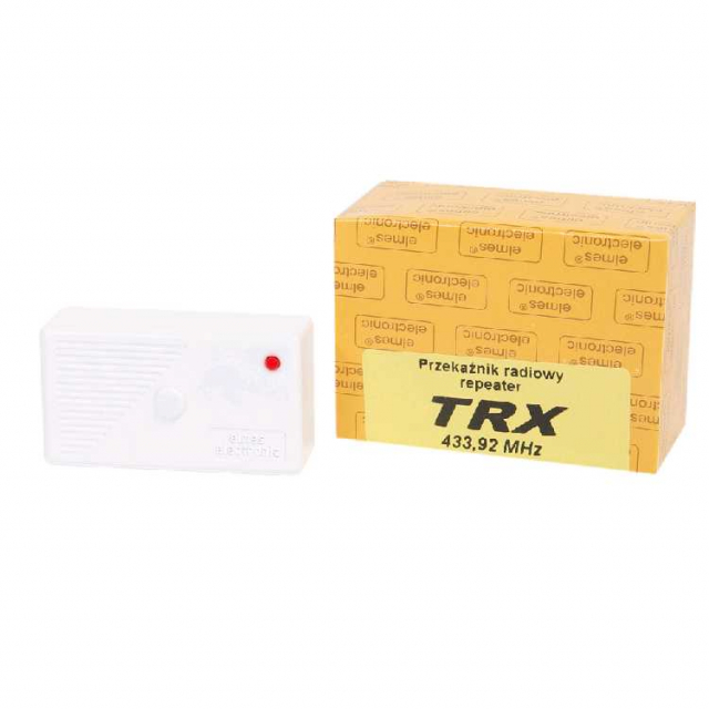 Ретранслятор Elmes TRX идентифицирует, хранит и ретранслирует сигналы, принятые только от передатчиков Elmes Electronic. Используя несколько ретрансляторов как цепь, можно покрыть большое расстояние. Можно сконфигурировать несколько ретрансляторов для одновременной работы, чем также достигается широкая площадь покрытия. Пользователь может настроить ретранслятор так, чтобы он передавал данные только от одного или от выбранных устройств, решая таким образом проблемы провалов связи в беспроводных системах охраны и управления доступом.