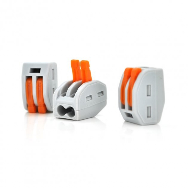 Агент 007™ » Расходные материалы » Клипсы » Клемма с нажимными зажимами 2-проводная WAGO K222-412 для распределительных коробок, 2-pin, серо-оранжевая