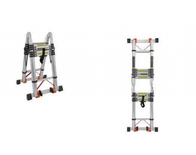Драбина подвійна TLT28040 телескопічна, компактна Висота: від 2,8 м - до 5,6 м, складений стан - 96 см, вага - 17,2 кг, максимальне навантаження - до 150 кг Розмір упаковки 98*51*17см