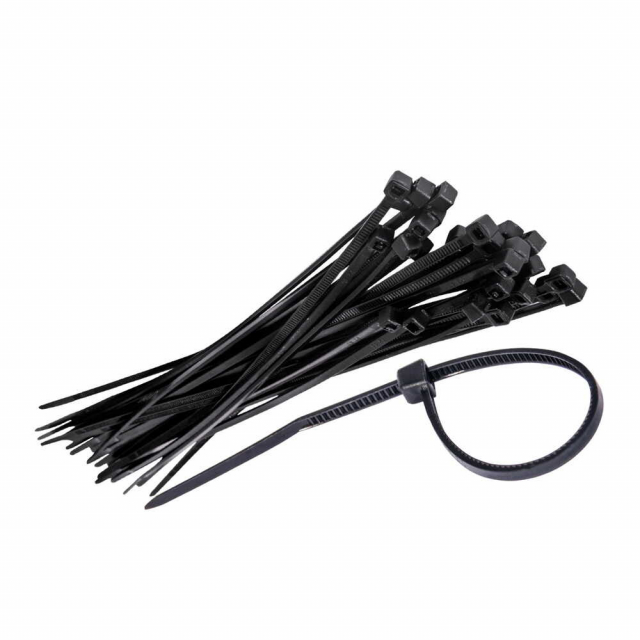 Кабельні хомути - це кріплення, виконане з вогнестійких матеріалів (нейлону або поліаміду), призначене для стяжки кабелю. Хомут являє собою ремінь з блокуючим механізмом. З його допомогою можна без зусиль об'єднати проводи та кабелі, надійно скріпивши їх самофіксуючим ремінем і надійно утримуючим механізмом. Хомут має високу стійкість до масел і перепадів температури.