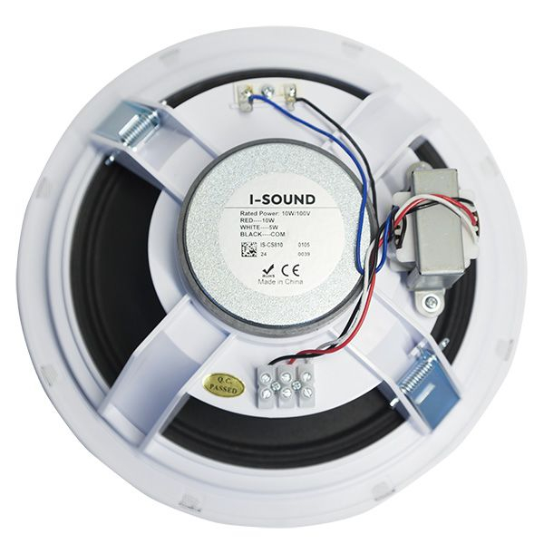 Агент 007™ » Речевое оповещение » I-Sound » Стельовий гучномовець I-Sound IS-CS810 (8”, потужність 5-10Вт / 100В, без рамки, діапазон 100-18кГц, врізний, матеріал – пластик, діаметр –210мм, колір білий, габарити – 230 х 90 мм, вага – кг)