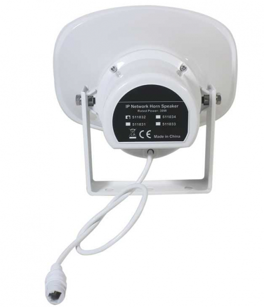 Мережевий рупорний гучномовець –забезпечує чистий, зрозумілий голос для віддаленого мовлення та чудова якість звуку для музики в публічних місцях. У надзвичайних ситуаціях це дозволяє оператору дистанційно звертатися до людей і доставляти попередньо записані повідомлення тривоги, які можуть бути вручну або автоматично запускатись через локальну мережу.