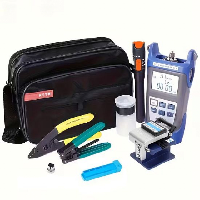 Набір інструментів для з'єднання оптичного волокна Особливість: 1. Оптичне волокно: Лезо з вольфрамової сталі, повністю металеве, з точним ЧПК-обробленням, може автоматично відскакувати, з тришаровим пристосуванням. 2. Вимірювач оптичної потужності т...