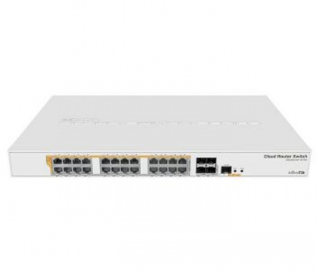 24-портовый управляемый коммутатор. RouterOS / SwitchOS. CPU 800 МГц, RAM 512 Мб. Downlink порты: 24x RJ45 (100 / 1000M) с поддержкой PoE (802.3 af / at); Uplink порты: 4x SFP+; AC 220В. -20o до +60oC; 443х305х44 мм.