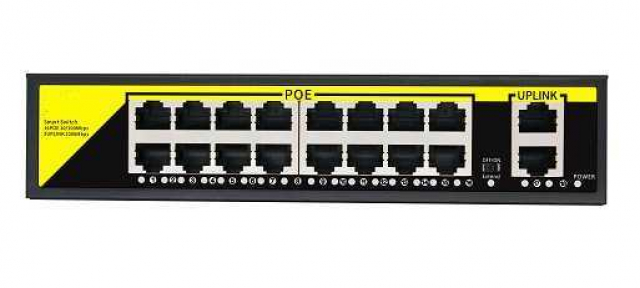 16*10/100 Mbps POE Port, 2*10/100/1000 Mbps RJ 45Port, Whole Power budget 200W
