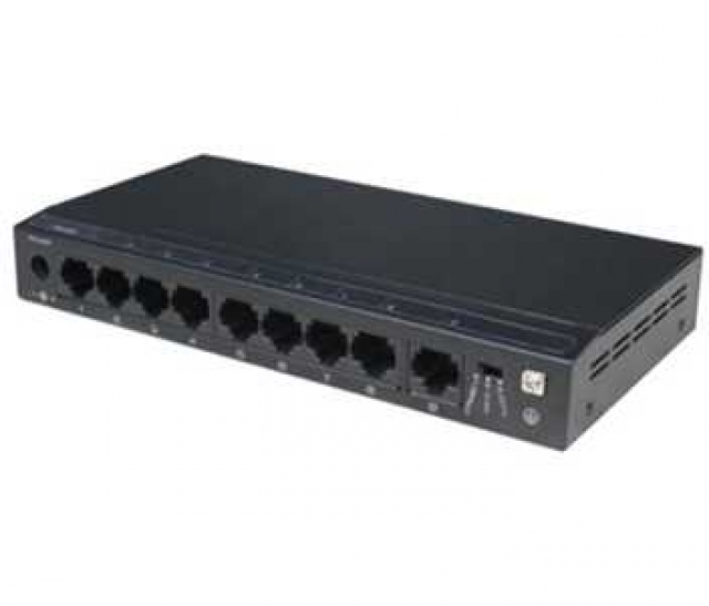 - 8х RJ45 (10/100M) Base-TX (PoE); Uplink 1x RJ45 (10/100) Base-T
