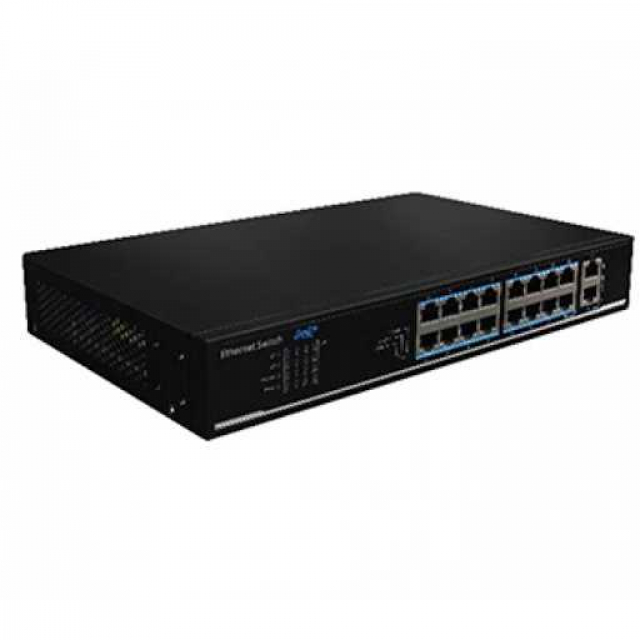 18-портовый PoE коммутатор. Downlink порты: 16x10/100Base-T с поддержкой PoE; Uplink порты: 2x RJ45 ( 10/100/1000 ); Протокол PoE: IEEE802.3af (PoE), 802.3at (PoE+); Защита от перегрузки сети 6кВ и ESD защита 8кВ; AC 100-240 В. -10? до +50?C; 294 х 1...