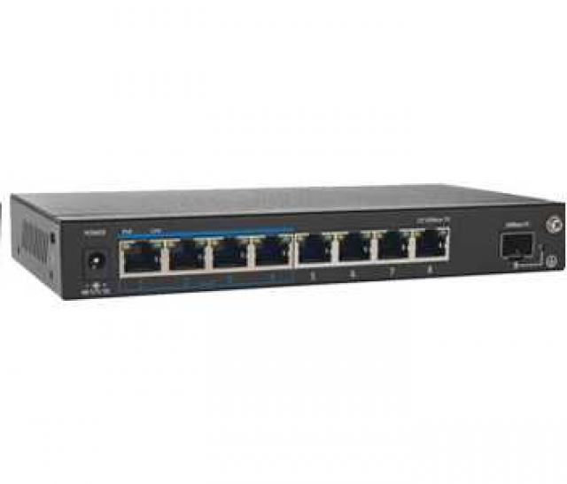 - Uplink: 1x SFP 100Base-X; Downlink: 4x RJ45 10/100Base-TX, 4x RJ45 10/100Base-TX c PoE;