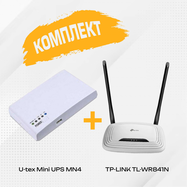 Комплект найпоширенішого роутера домашнього класу TP-Link TL-841N з мобільним джерелом безперебійного живлення U-Tex MiniUPS MN4
