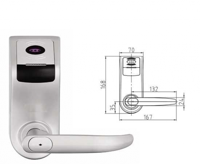 Безконтактний замок SMART LOCK працює від безконтактної картки TEMIC, що дозволяє об'єднати системи контролю доступу до номерного фонду та службових приміщень. Установка замка не вимагає вирізання великих отворів у двері, тому що картка не вставляється в замок, а зчитується пристроєм, що знаходиться на поверхні замку. Таким чином цей замок підійде до будь-яких дверей, навіть найнестандартніших. Такі замки можуть бути встановлені навіть на двері, виготовлені з тонких профілів.