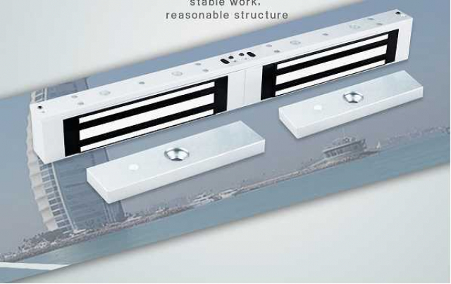 Накладний електромагнітний замок для подвійних дверей із силою утримання до 180 кг*2 на розрив. Призначений для внутрішньої установки на металеві, пластикові, металопластикові, дерев'яні чи скляні двері