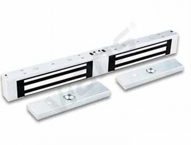 Накладний електромагнітний замок для подвійних дверей із силою утримання до 280 кг*2 на розрив. Призначений для внутрішньої установки на металеві, пластикові, металопластикові, дерев'яні чи скляні двері
