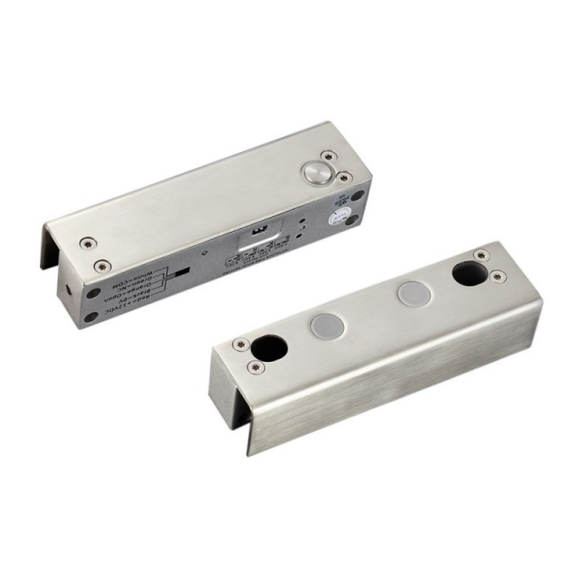 Електроригельний замок для встановлення на скляні двері без рами, з таймером затримки. Без живлення відкритий