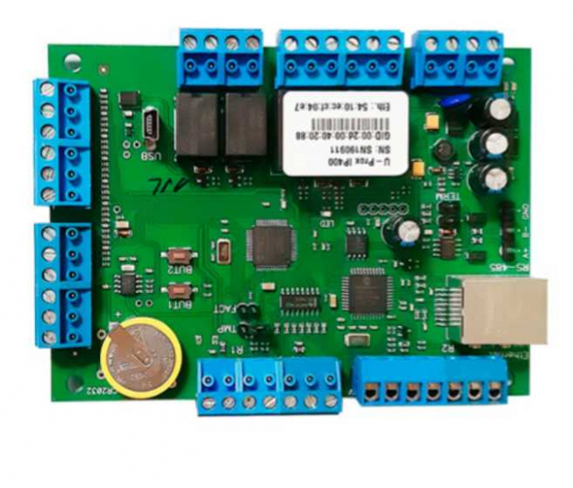 IP400 EM - це електронний блок (плата контролера) контролера доступу до мережі IP400. Призначений для контролю доступу 2-х односторонніх дверей або однієї двосторонньої. Оснащений 2 реле і 8 програмованими шлейфами. Є USB-порт для налаштувань мережі. Працює з програмним забезпеченням U-Prox IP.