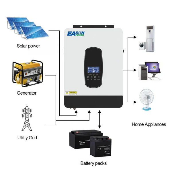 Цей інвертор підходить для роботи зі свинцево-кислотними та літієвими акумуляторами користувача напругою 48 В. Він дозволяє гнучко планувати час заряджання та розряджання інвертора завдяки вбудованій інтелектуальній системі заряджання акумулятора. Має захист від перевантаження, перегрівання та короткого замикання, функцію холодного старту, оптимізує продуктивність акумулятора, що дозволяють продовжити термін служби акумулятора. РК-дисплей у режимі реального часу відображає параметри заряджання, настроюваний діапазон напруги в будинку, зарядний струм, пріоритет зарядки від змінного струму та сонячної енергії, прийнятну вхідна напруга системи.
