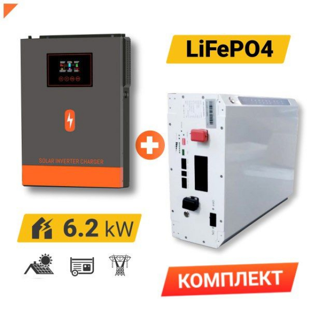 Комплект резервного живлення (Інвертор PowMr POW-HVM6.2M-48V + LifePo4 Батарея CUR5000H 51.2В 100Ач)