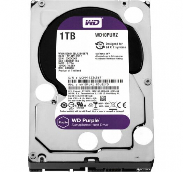 Агент 007™ » Видеонаблюдение » Накопители информации » HDD » Жесткий диск (HDD 1TB Western Digital Purple WD10PURZ