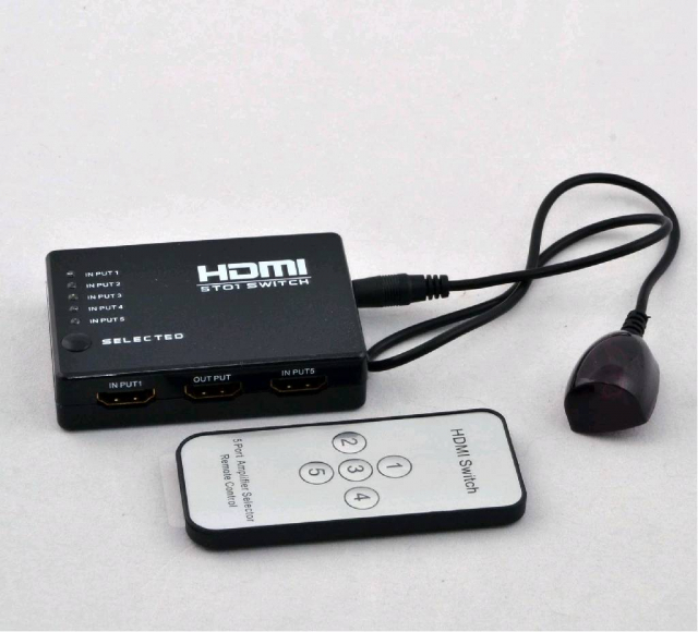 Делитель HDMI 1/5 (с ИК ПДУ) (HDMI 1.3b, HDCP, 1080P, Audio LPCM & DTS Dolby Digital)