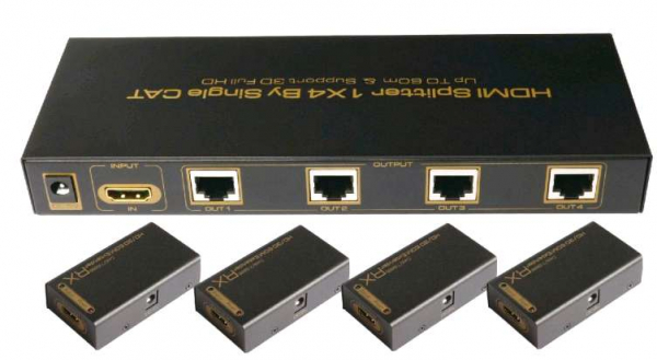 YT-HDSPEX104 HDMI сплиттер-удлинитель HDMI сигнала по UTP кабелю + 4 приемника