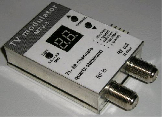 • ТВ-модулятор позволяет преобразовать аудио/видео сигналы различных источников (камер охранного видеонаблюдения, видеомагнитофонов, спутниковых тюнеров) в радиочастотный сигнал любого телевизионного канала