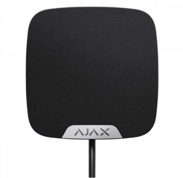 Звукова сигналізація з налаштованим рівнем звуку від 81 до 105 дБ. Працює на значній відстані від Ajax Hub: 1500 метрів відкритого простору. Живлення від джерела постійного струму 12В або вбудованих батарей. Харчування без зміни батареї - до 5 років