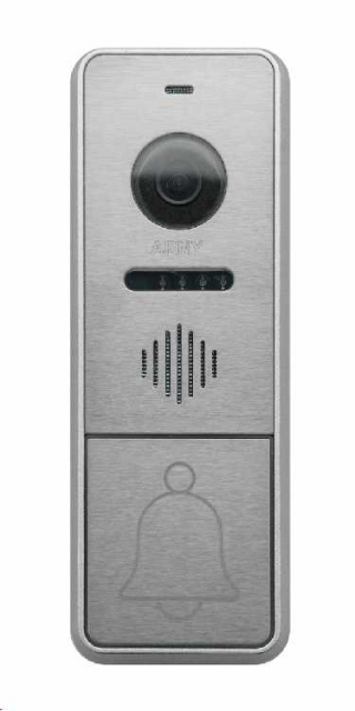 Панель виклику з невидимою ІЧ підсвічуванням. Вбудована відеокамера з роздільною здатністю 720P. Кут огляду: 110 град. Матеріал: сатинований метал. Колір: срібло. Габаритні розміри: 43 х 128 х 15.5 мм